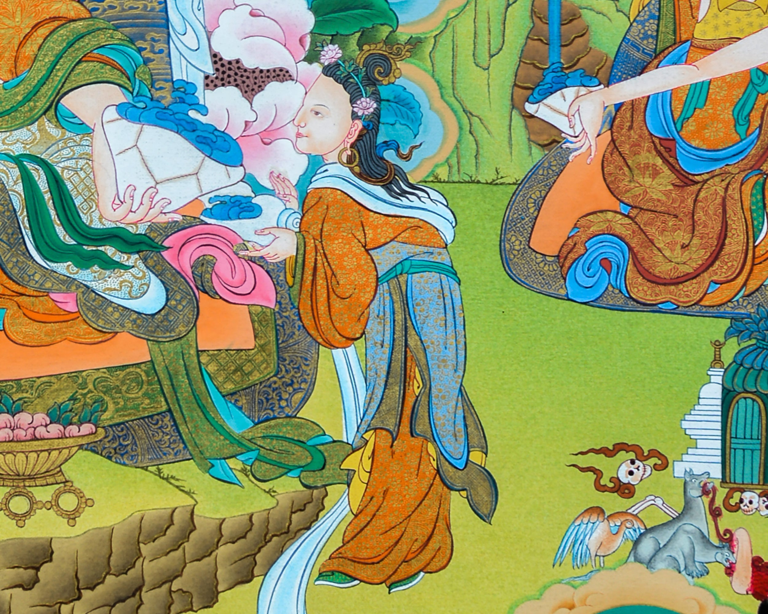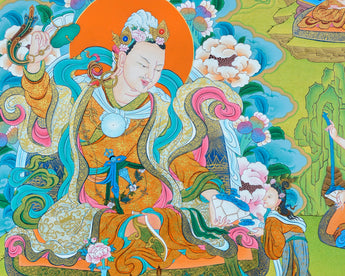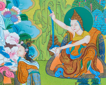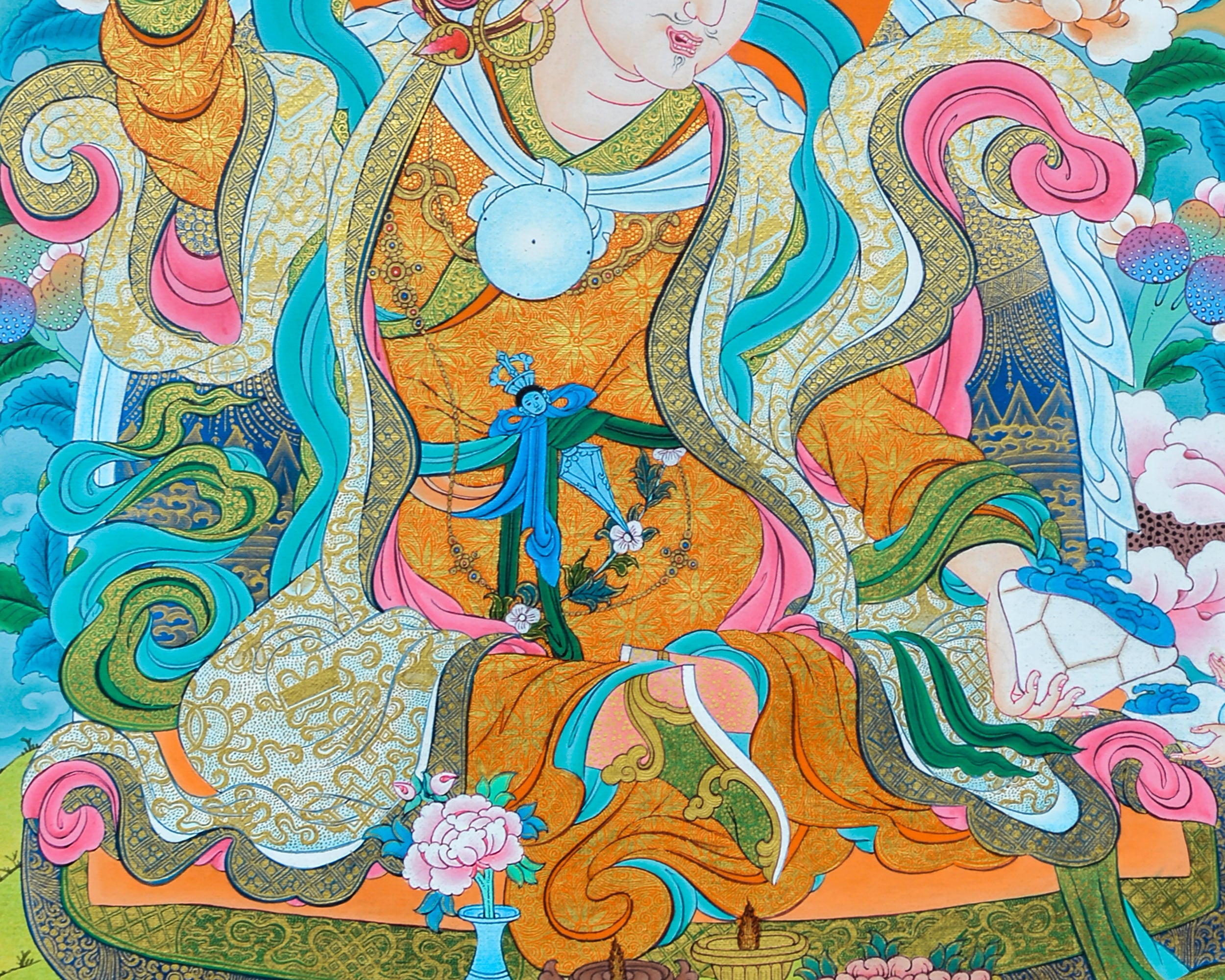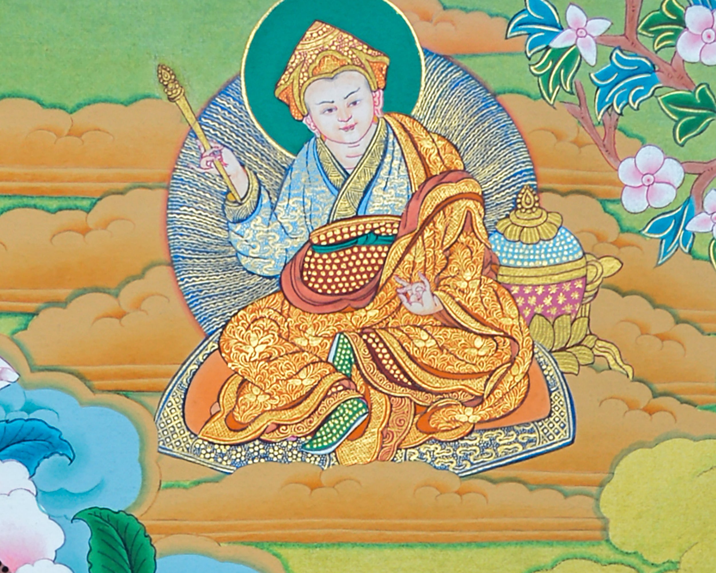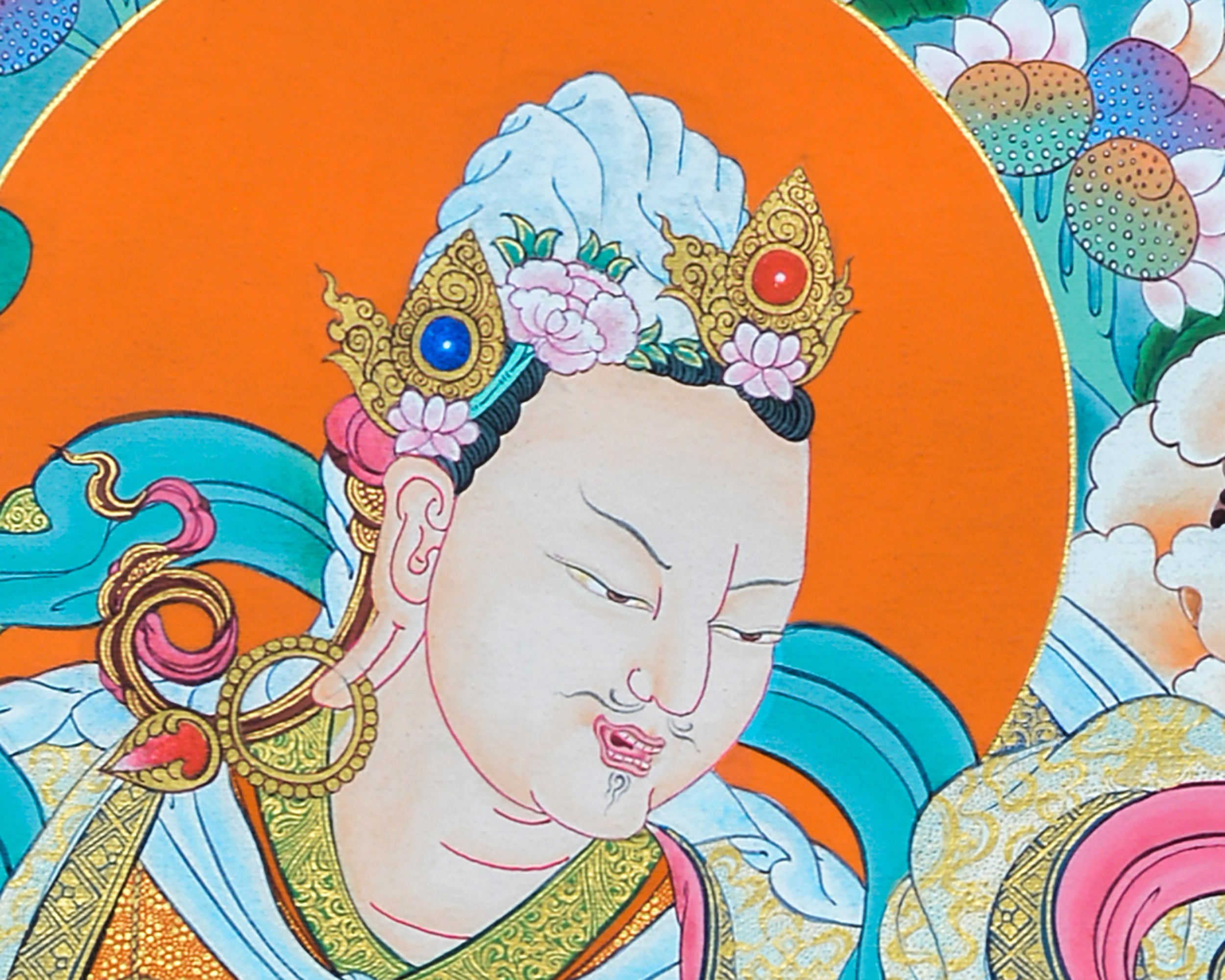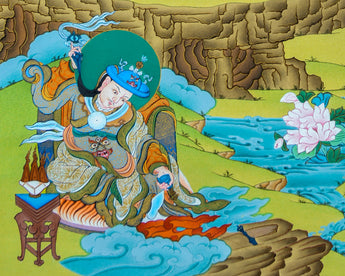 Loden Chogse is one of the eight manifestations of Guru Rinpoche. This Thangka is done following Buddhist text and iconography detail to make sure it presents all the right attributes for your meditation practice.