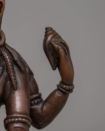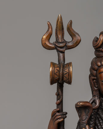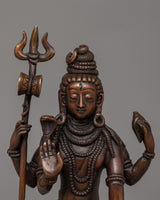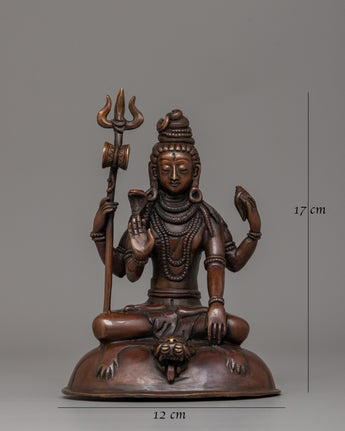 This handcrafted oxidized copper statue of Lord Shiva represents the potent energies of destruction, renewal, and transformation. It is 17cm tall and 12cm wide and elaborately sculpted. This statue represents Shiva's cosmic dance, which symbolizes the cycle of creation and destruction. Whether placed on an altar, meditation room, or home shrine, it promotes spiritual energy, balance, and enlightenment.