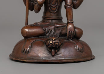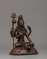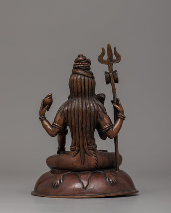 This 0.918 kg Shiva statue is expertly fashioned from oxidized copper and emits an old, timeless beauty, making it a prized item for Hindu devotees, collectors, and spiritual searchers. The oxidized finish intensifies the heavenly atmosphere, symbolizing Lord Shiva's raw force and mystique. Shiva, the Destroyer in the Holy Trinity (Trimurti), represents eradicating ignorance and negativity, guiding followers to spiritual awareness and transformation.