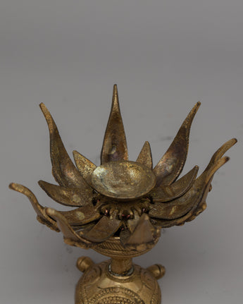 Standing at a height of 10.5cm, this lamp becomes a focal point of your spiritual rituals or home decor. The lotus design not only adds elegance but also represents the unfolding of spiritual potential.