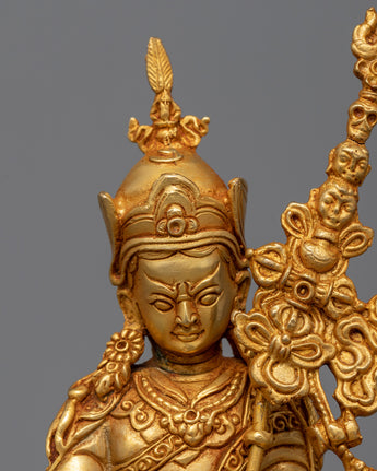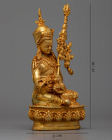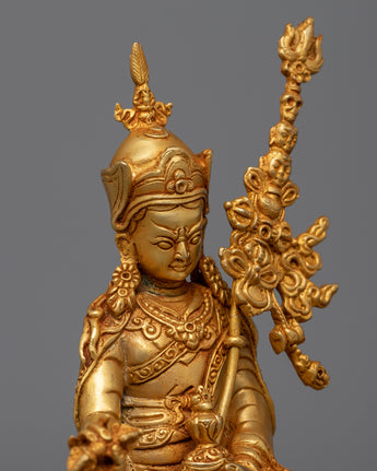 This Guru Rinpoche Statue, created using modern technology, captures the essence of devotion and artistry. The copper body, chiseled with digital precision, serves as a canvas for spiritual reverence. It's opulent 24k gold plating heightens its allure. At 16cm, it serves as a symbol of devotion, a testament to the harmonious marriage of tradition and innovation, where Guru Rinpoche's spirit finds new creative expression.