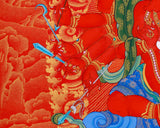 This stunning Majestic Red and Gold Ganapati Thangka features a rich 24k gold design of the beloved deity Ganesh. This traditional tapestry is perfect for bringing positive energy and auspiciousness into your home or sacred space. A beautiful and meaningful addition to any decor.