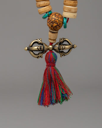 Handcrafted Mala with Vajra at The End Yak Bone Prayer Beads for Spiritual Practice