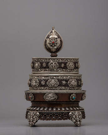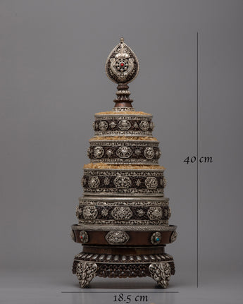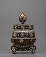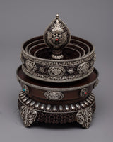 The silver plating makes the mandala more wealthy and refined, giving it a brilliant radiance and enhancing its aesthetic appeal. Its 1.98 kg weight gives it a substantial, presence-filled feel, making it a perfect focal point for altars, meditation areas, or hallowed shrines.
