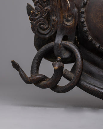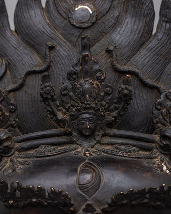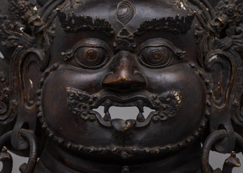 As a vicious incarnation of Lord Shiva, Bhairava stands for both safety and overcoming fear. The intricate engravings on the Brass Mask of Bhairava inspire wonder and veneration and showcase our artists' skill. This sculpture is painstakingly created to capture the nuanced characteristics and facial expressions that represent the heavenly presence of Bhairava.