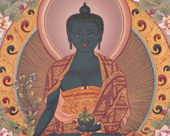 So whether you're seeking solace, healing, or simply a moment of serenity, let this Medicine Buddha thangka be your guide. Allow its presence to envelop you in a sense of calm and reassurance, reminding you of the healing potential within and the boundless compassion that surrounds us all.
