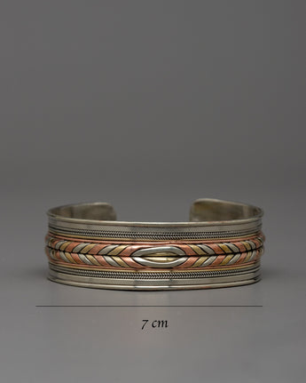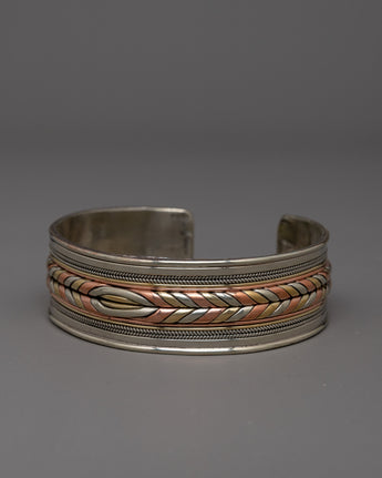 Presenting the Metal Adjustable Bracelet, a multipurpose and fashionable piece of jewelry made of a combination of three metals: brass, copper, and white metal. This special combination gives any ensemble a sophisticated touch while also guaranteeing durability. It fits wrists of all sizes perfectly, thanks to its adjustable design.