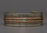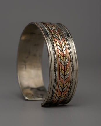 The rich tones of copper, the warmth of brass, and the glossy shine of white metal come together in the Bracelet to create an eye-catching visual contrast. The classic style of this bracelet, worn on its own or stacked with others, elevates any ensemble from casual to formal.