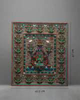 This Green Tara Metal Artwork Wall Hanging, outer frame is made up of copper while inner is in a wooden frame, is built to last and maintain its beauty and significance over time. Whether used for meditation, prayer, or simply as a decorative piece, it is a potent symbol of compassion, protection, and spiritual growth, prompting reverence and thoughtfulness in those who see it.