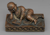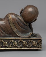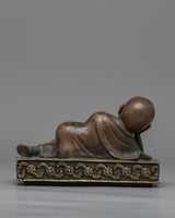 This exquisitely carved Monk Garden Statue will instill peace in your outdoor area. This statue, which is made of copper and is expertly created, shows a calm and peaceful monk reading a book while lying in a meditative sleeping position. The monk motions for you to take a moment of silence and find serenity in your own surroundings with his right hand on his head and the other on the book. This statue brings peace and tranquillity to any setting, whether it is in a garden, on a patio, or even inside. With the help of this classy and timeless garden statue, take a minute to relax and meditate.