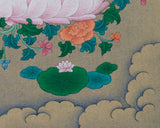Our Mother Green Tara Buddha thangka is a stunning and sacred artwork, created on high-quality materials, including cotton canvas, natural stone colors, and 24K gold. The cotton canvas offers a sturdy base, while the natural stone colors bring vibrant shades to life. The 24K gold adds a gentle glow, representing spiritual purity and enlightenment. This thangka is meticulously hand-painted in the traditional Karma Gadri style, a highly revered Tibetan artistic technique renowned for its intricate details and vibrant colors.