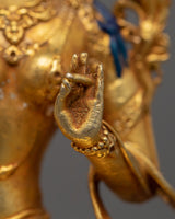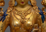 We have exquisitely crafted the sculpture of Mother Green Tara using the machine. We are the Kathmandu Valley artist whose artisan in making ancient Green Tara statues has passed through generations. The body is made using copper which is then electroplated with 24K pure gold and magnificently hand-painted with acrylic paints. Practitioners can make use of this statue during rituals, yoga, meditation, and other Buddhist ceremonies. The electroplating of the statue using gold gives the statue an outstanding shine.