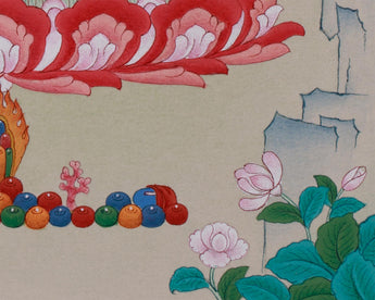As requested for consecrations/blessings, we can take thangka to Monasteries/Rinpoches from nearby Boudha Stupa. We kindly ask you to offer $50 for the monasteries for blessings/consecration services.