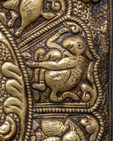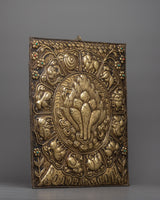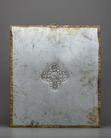 A metal thangka is a type of thangka painting that is made on a metal surface rather than on traditional canvas or paper. Metal thangkas are often made using copper, brass, or silver and are usually decorated with intricate designs and Buddhist iconography using a technique called repoussé. This involves hammering the metal from the reverse side to create a raised relief image on the front. Metal thangkas are known for their durability and are often used in ritual contexts or as decorative pieces in Buddhist homes and temples. They are particularly common in Tibet, where they have been produced for centuries.