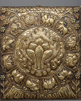 Norbu Metal Wall Hanging Thanka Calander | Zodiac Signs Surrounding Norbu for Spiritual Insight and Decorative Harmony