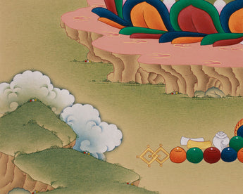 HAND-PAINTED WITH NATURAL LHASA STONE COLOR AND GENUINE 24K GOLD IN TRADITIONAL KARMA GADRI STYLE