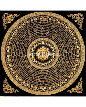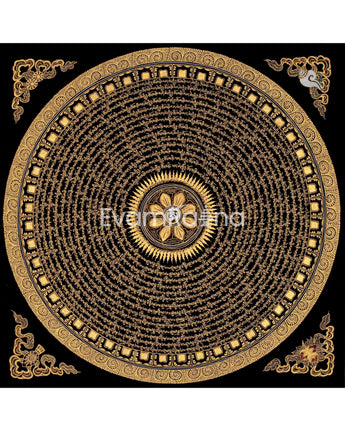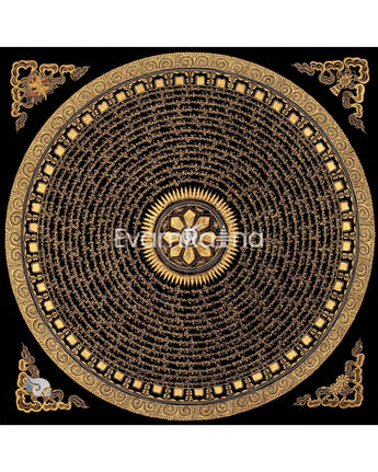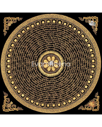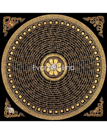 Original Hand Painted Mantra Mandala Thangka | Black And Gold Style Mandala