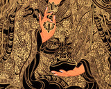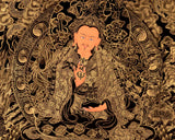 Guru Rinpoche, or precious teacher, is known as Padmasambhava - the 'lotus born. Known as the second buddha who propagated the Buddhadharma throughout Tibet, he is considered the complete embodiment of all Buddhas of the three kayas. To benefit numerous beings and spread the Buddhadharma during the age of decline, Guru Rinpoche spread many hidden treasure teachings throughout Tibet and within the minds of his students. These were later discovered as termas.