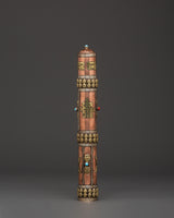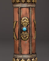 The Portable Incense Case is a beautifully constructed object that combines traditional Tibetan elegance with practical utility. This incense case, measuring 47.5 cm in height and 4 cm in breadth, is crafted of copper and brass, giving it a classic appearance. It weighs only 0.184 kg and is light and portable, making it suitable for travel, meditation, or ceremonial rituals. The intricate mantra carvings and beautiful brass decorations represent the artistry found in Tibetan spiritual objects. Its lockable lid keeps your incense sticks safe and fresh even in transit.