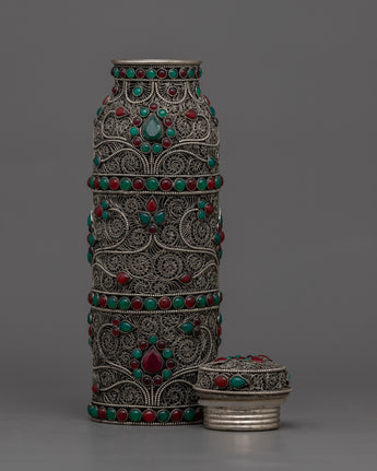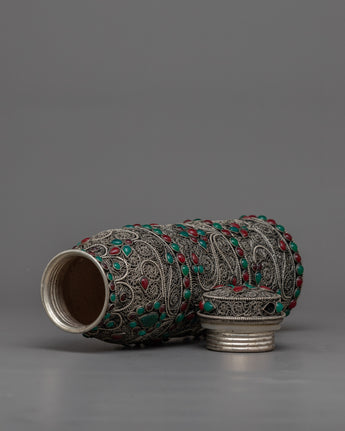 Introducing our Buddhist Portable Snuff Bottle, a symbol of how art and spirituality can coexist. This bottle, which has a copper body and exquisite silver plating, is a work of art that goes beyond beauty.