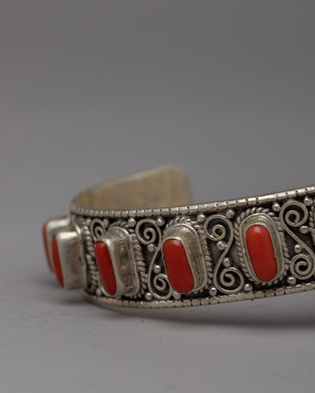 Pure Red Coral Stone Hand Bracelet | Tibetan Buddhist Charm Bracelet | Exquisite Gemstone Jewelry for Elegant Look