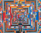 Kalachakra Mandala is one of the most complicated forms of Tibetan mandalas which is used as a device for meditation and which is worshipped for the betterment of all the sentient beings.It also represents the cosmos system which consists of the five major elements of life. Namely – Fire , Earth , Water , Air and Space .