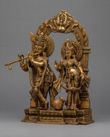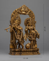 Traditional Radha And Krishna Gold Statue For Rituals | Hindu Deity Brass Figure