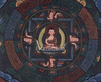 The vintage style of Buddha Mandala Thangka encapsulates the essence of traditional Tibetan Buddhist art, carrying within it a timeless beauty and spiritual significance. This style draws inspiration from ancient techniques and designs, preserving the cultural heritage of Tibet and the broader Himalayan region.