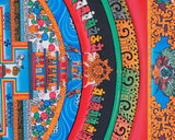 Red Kalachakra Mandala Thangka | Dragon Motif Artwork | Religious Wall Hanging Decors