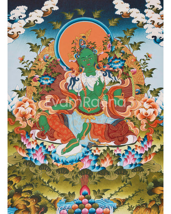 Religious Green Tara Thangka Painting | Mother of Liberation and Compassion