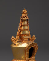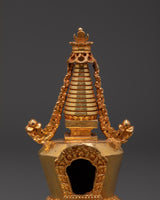 Sacred Spiritual Copper Stupa | Handcrafted Gold Plated Tibetan Buddhist Statue