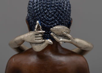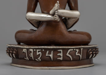 With our Samantabhadra with Consort Samantabhadri Statue, you may bring the personification of global virtue and divine union into your home. This statue stands 8.4 inches tall and has a base diameter of 6.8 inches, making it an ideal addition to your shrine, house, or meditation place. The statue is made of an oxidized copper body, representing the long heritage of Buddhist craftsmanship and giving it a distinct antique appearance.