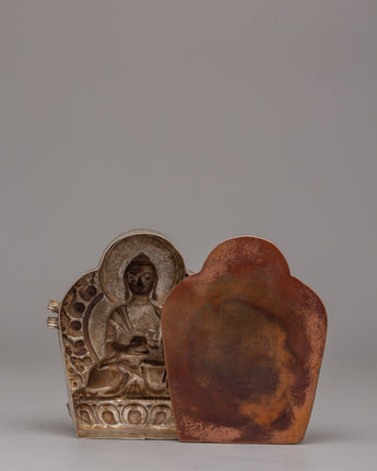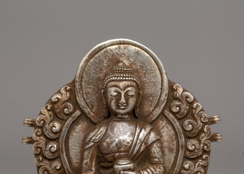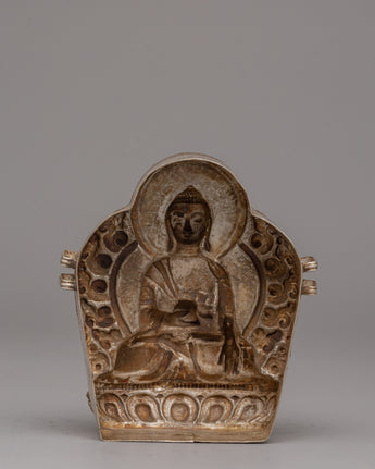 Shakyamuni Buddha Ghau Box in Silver | Sacred Buddhist Prayer Box