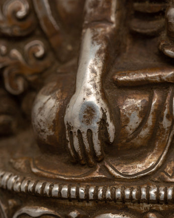 Shakyamuni Buddha Ghau Box in Silver - Sacred Buddhist Prayer Box