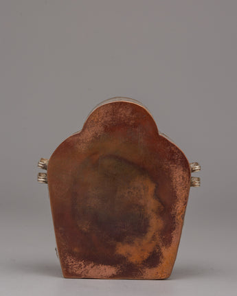 A stunning work of spiritual art, this gorgeous Shakyamuni Buddha Ghau Box in Silver is made by hand from 97.5% silver and features a copper back. With its tranquil image of Shakyamuni Buddha surrounded by elaborate Tibetan patterns, this prayer box, which measures 10.5 cm in height and 9.5 cm in breadth, is exquisite. With a weight of about 0.13 kg, it is minimal but effective, making it ideal for meditation areas, personal altars, or a distinctive piece of spiritual décor.