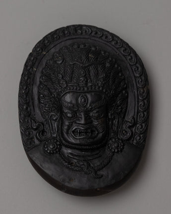 Mahakala Face On Shaligram Shila | Symbolizing Strength and Spiritual Safeguarding