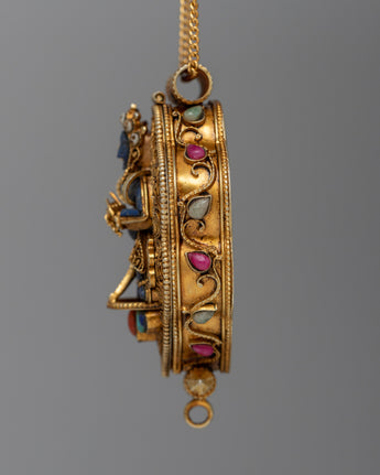 Another holy figure sits inside this gorgeous locket, providing a close spiritual link for introspection and protection. A sacred mantra, which the user personally invokes for peace and enlightenment, is carved on the back side of the locket and follows them on their daily journey. Ideal for individuals who value artistry and spirituality combined in a beautiful display.