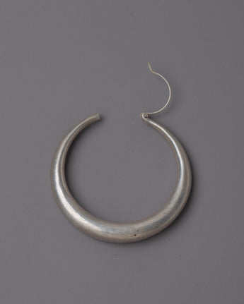A beautiful pair of earrings that embodies elegance and traditional craftsmanship is the Handmade Silver Hoop Earrings. These gorgeous earrings, which weigh only 0.010 kilograms, are made of fine silver and have dimensions of 6 cm in height by 5 cm in breadth. These earrings are the ideal fusion of refinement and style because to their fine detailing and excellent finish, which showcase the artist's talent and hard work.