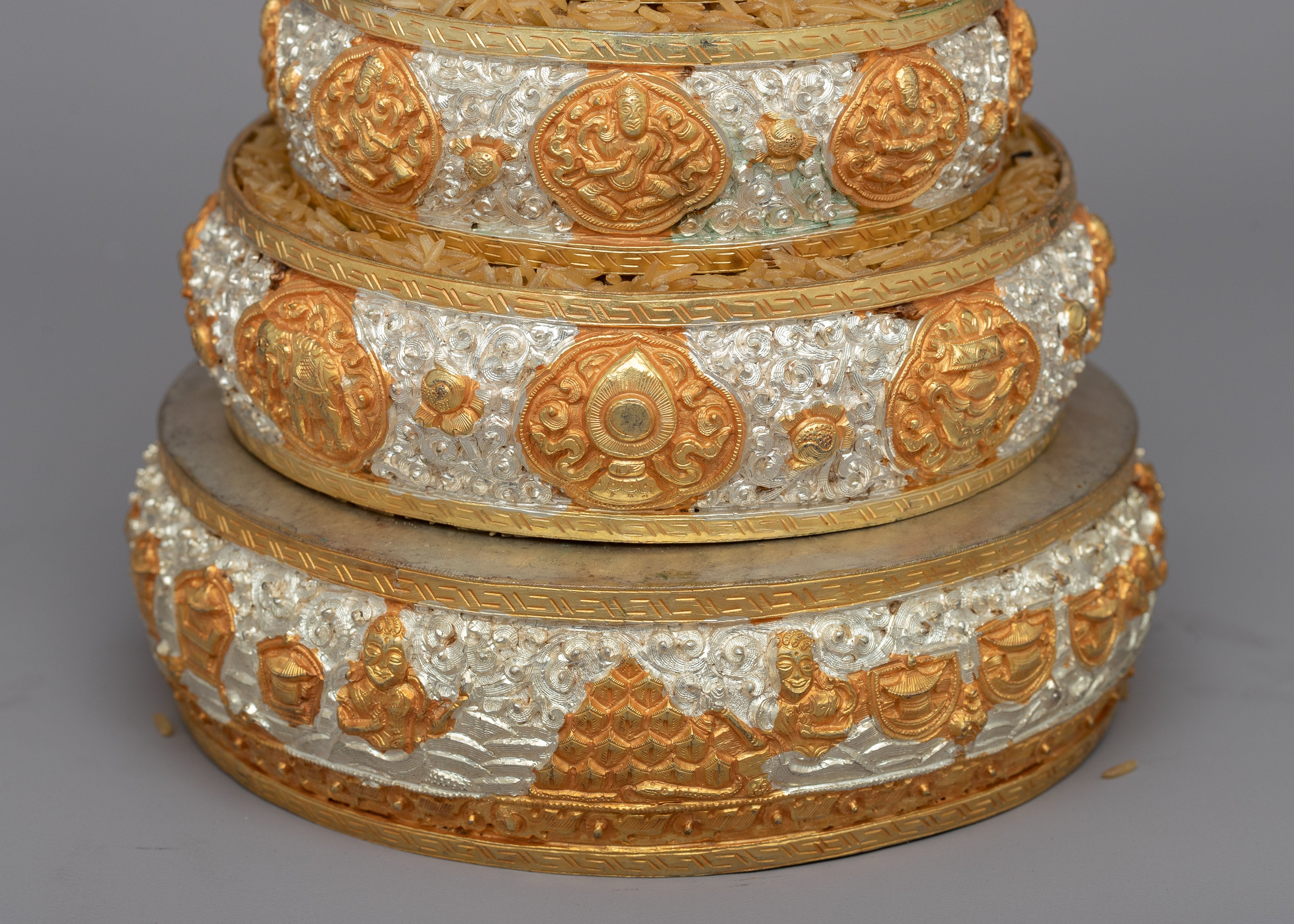 What makes this set truly special is the combination of gold and silver plating, symbolizing purity and wealth. Having it in your sacred space serves as a tangible connection to your spiritual journey, promoting inner peace and prosperity.