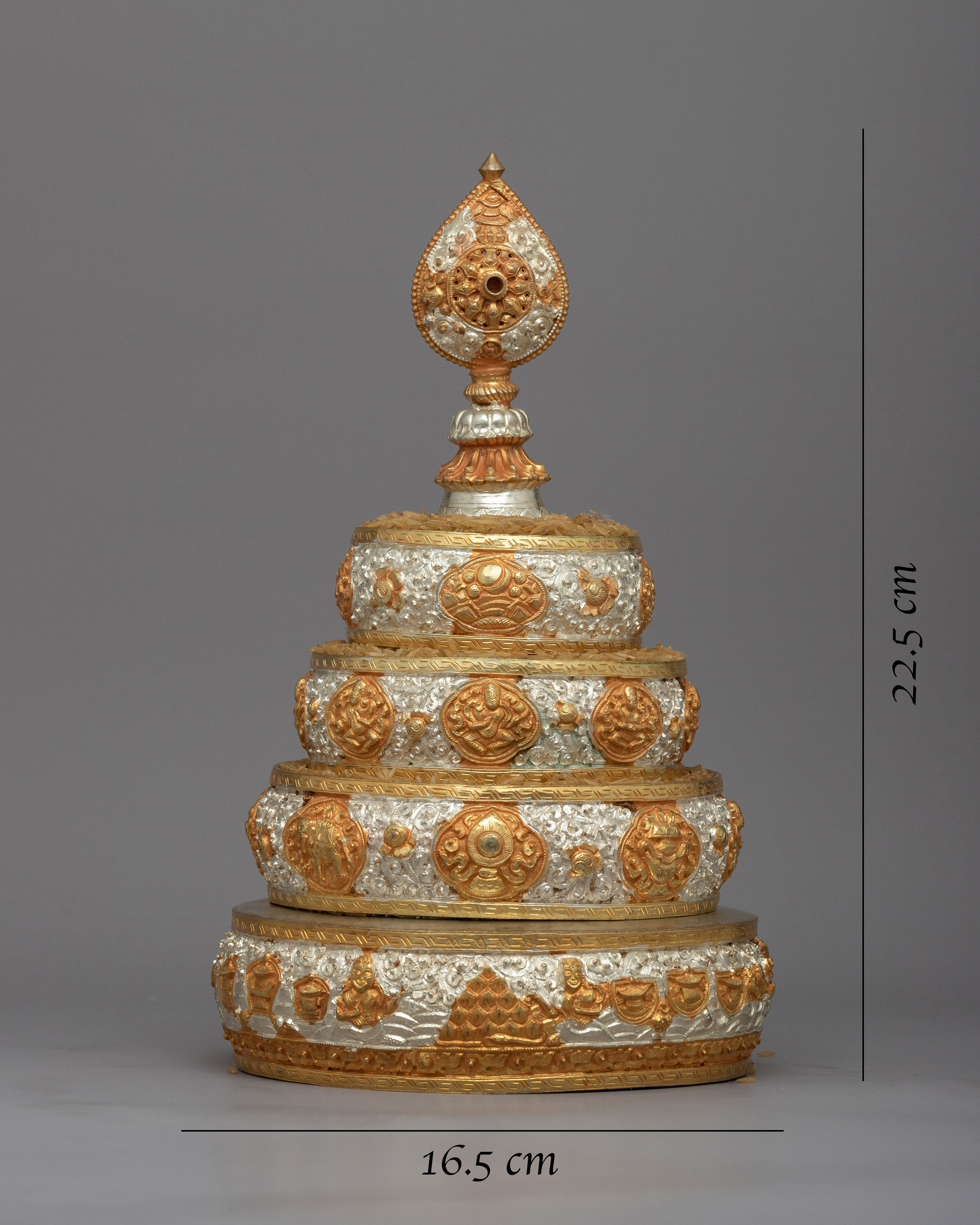 Standing at a height of 22.5cm, this set includes various components, each with its unique significance in spiritual practices. The Mandala, often used for meditation and prayer, represents a sacred space for spiritual awakening.