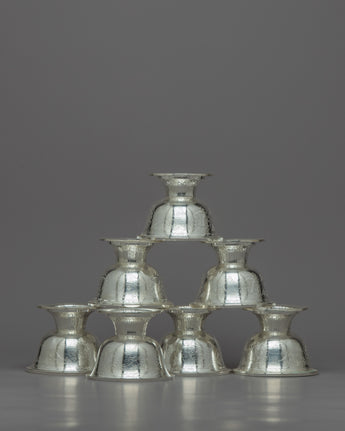 With these Silver Water Offering Bowls, you may embrace the custom and importance of water offerings in Buddhist and Hindu practices. Let their bright presence deepen your spiritual connection and provide a feeling of holiness and grace to your rituals.