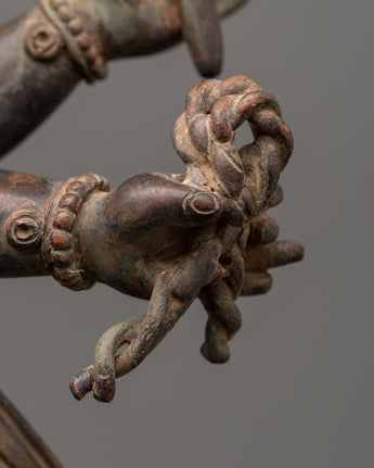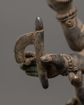 This Six-Armed Ganesh Statue measures 32.5 cm in height and 20.5 cm in width, weighing 3.22 kg. This statue of Lord Ganesh is crafted from high-quality copper and features an antique finish. It symbolizes the heavenly virtues of knowledge, prosperity, and removing obstacles. Lord Ganesh, the venerated Hindu god, is depicted with six limbs, representing his capacity to eliminate all life’s barriers and grant blessings of prosperity and abundance.