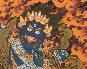 The small Vajrapani Thangka serves as a portable and accessible representation of this powerful bodhisattva, making his protective and empowering presence available to practitioners in their personal meditation spaces. The intricate artwork and vivid depictions in the thangka are not just visually striking but also spiritually significant, providing a focal point for meditation and a reminder of the strength and determination required on the journey to enlightenment.