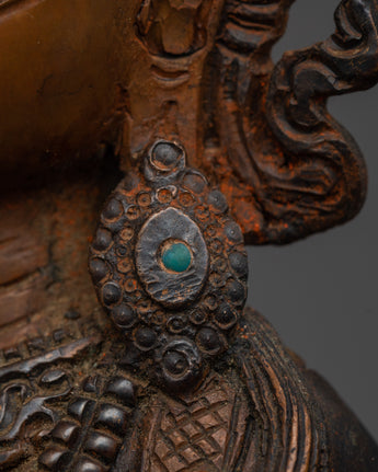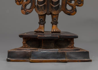 With our painstakingly carved statue, you can experience the tremendous compassion and mercy of the Standing 4 Armed Bodhisattva Chenrezig. Each beautifully carved silhouette from oxidized copper reveals Nepal's age-old artistry, its rustic texture echoing ancient tales and everlasting spirituality.