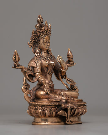 Immerse yourself in the heavenly presence of Statue of Goddess Laxmi, which is expertly handmade on a copper body. Standing beautifully at 16.5cm, this statue captures the adored deity's grace and prosperity. Every aspect, from the delicate features to the exquisite adornments, is meticulously crafted, exuding a sense of celestial beauty.