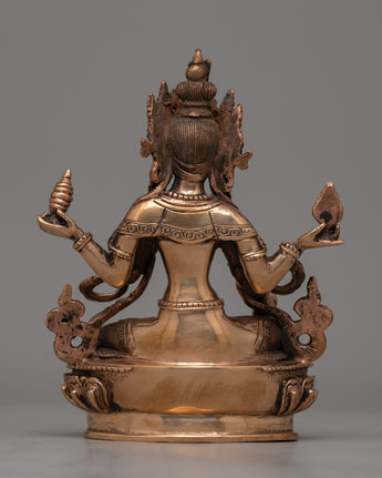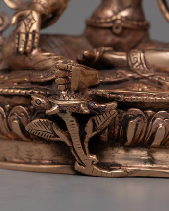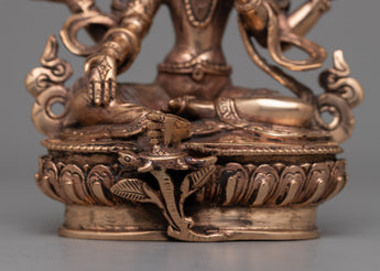 The statue's copper body exudes authenticity and warmth, strengthening its exquisite character. Whether displayed in a sacred area or as a centerpiece in your house, this magnificent statue is an everlasting symbol of blessings and abundance, bringing the grace of Goddess Lakshmi into your life.