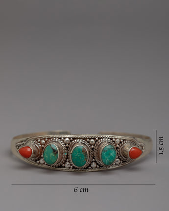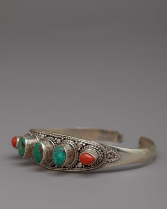 The bracelet has an attractive design that is achieved by skillfully fusing together vibrant red coral stones and tranquil green stones. This bracelet is ideal for both men and women who value distinctive jewelry with deep meaning because of its adjustable fit and comfortable wearing.