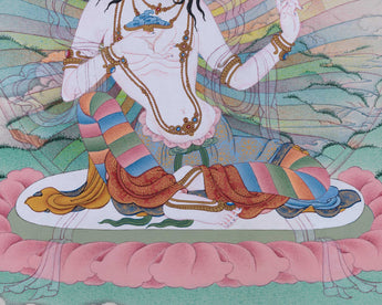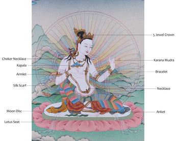 Sukha Siddhi, the Meditation Dakini, stands as a luminous embodiment of blissful attainment and meditative grace in Tibetan Buddhist traditions. Often depicted in serene meditation, she personifies the transformative power of deep contemplation and the bliss that arises from within. Sukha Siddhi guides practitioners on the path of meditation, encouraging inner tranquility and a profound connection with one's true nature. Her name, "Sukha Siddhi," translates to "Blissful Attainment," signifying the joyous realization that arises through dedicated meditative practice. In sacred thangka art, such as our Meditation Dakini Sukha-Siddhi Thangka hand-painted on cotton canvas with natural stone color and genuine 24K gold, she becomes a visual representation of the serene journey into meditative states and the attainment of spiritual bliss. Sukha Siddhi's presence inspires seekers to delve into the depths of their inner selves, unlocking the transformative potential of meditation on the path to enlightenment.