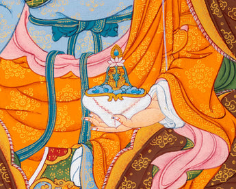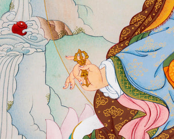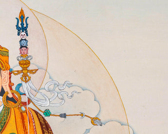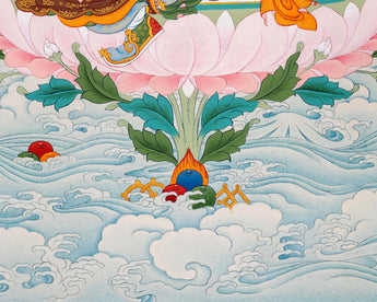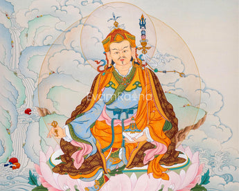 This Surreal Lotus Master Guru Padmasambhava Thangka is a stunning piece of art that depicts the revered Guru Padmasambhava. This intricate Thangka is hand-painted, showcasing the timeless beauty and spiritual significance Guru Padmasambhava in the path to enlightenment. A unique addition to any space, bringing peace and serenity to its surroundings.