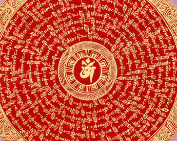 Tibetan Thangka of Mantra Mandala Featuring Om Mani Padme Hum